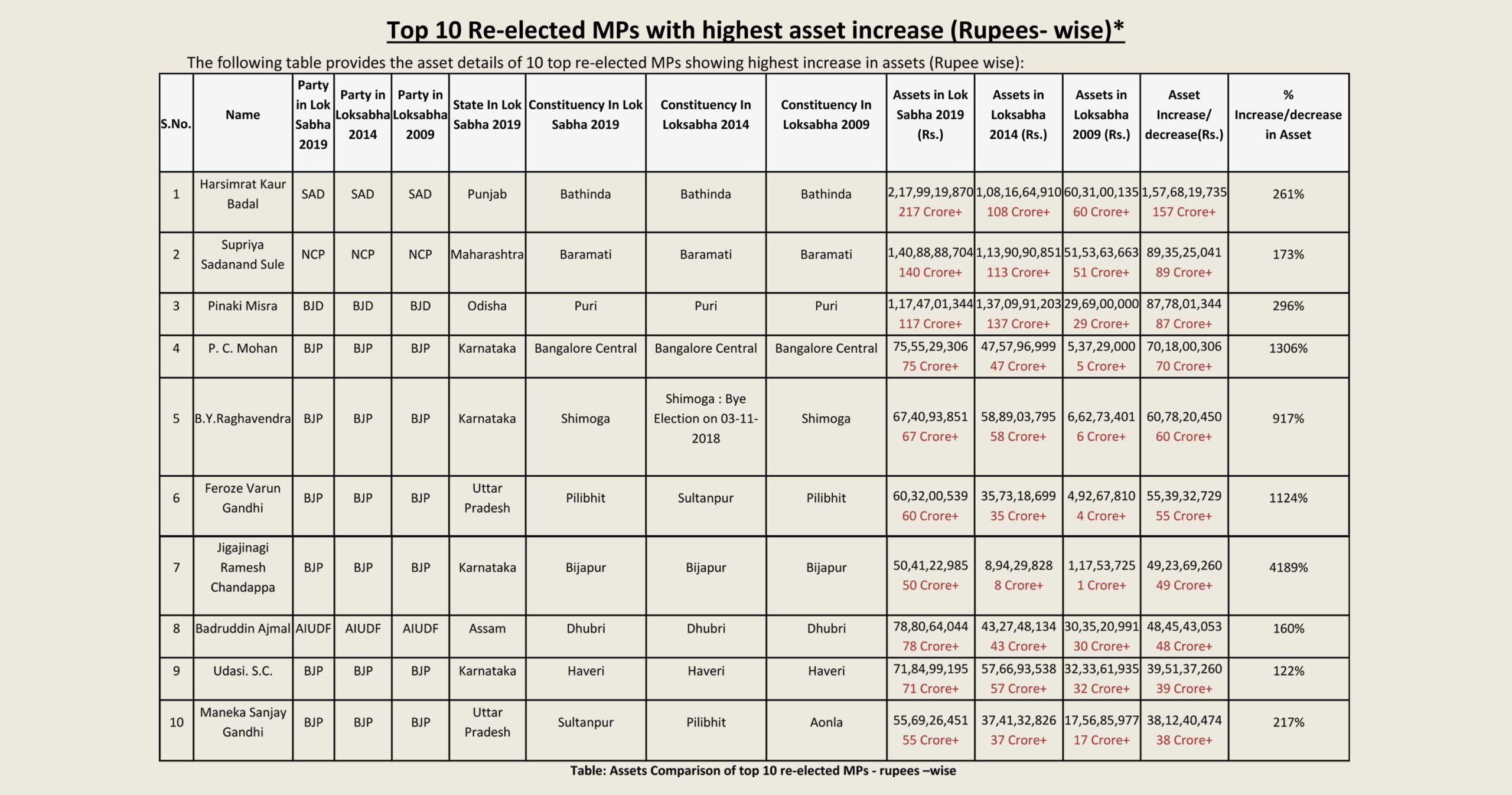 2009 ರಿಂದ ದೇಶದಲ್ಲಿ 71 ಸಂಸದರ ಆಸ್ತಿ ಮೌಲ್ಯವು ಸರಾಸರಿ ಶೇ.286 ರಷ್ಟು ಹೆಚ್ಚಾಗಿದೆ.