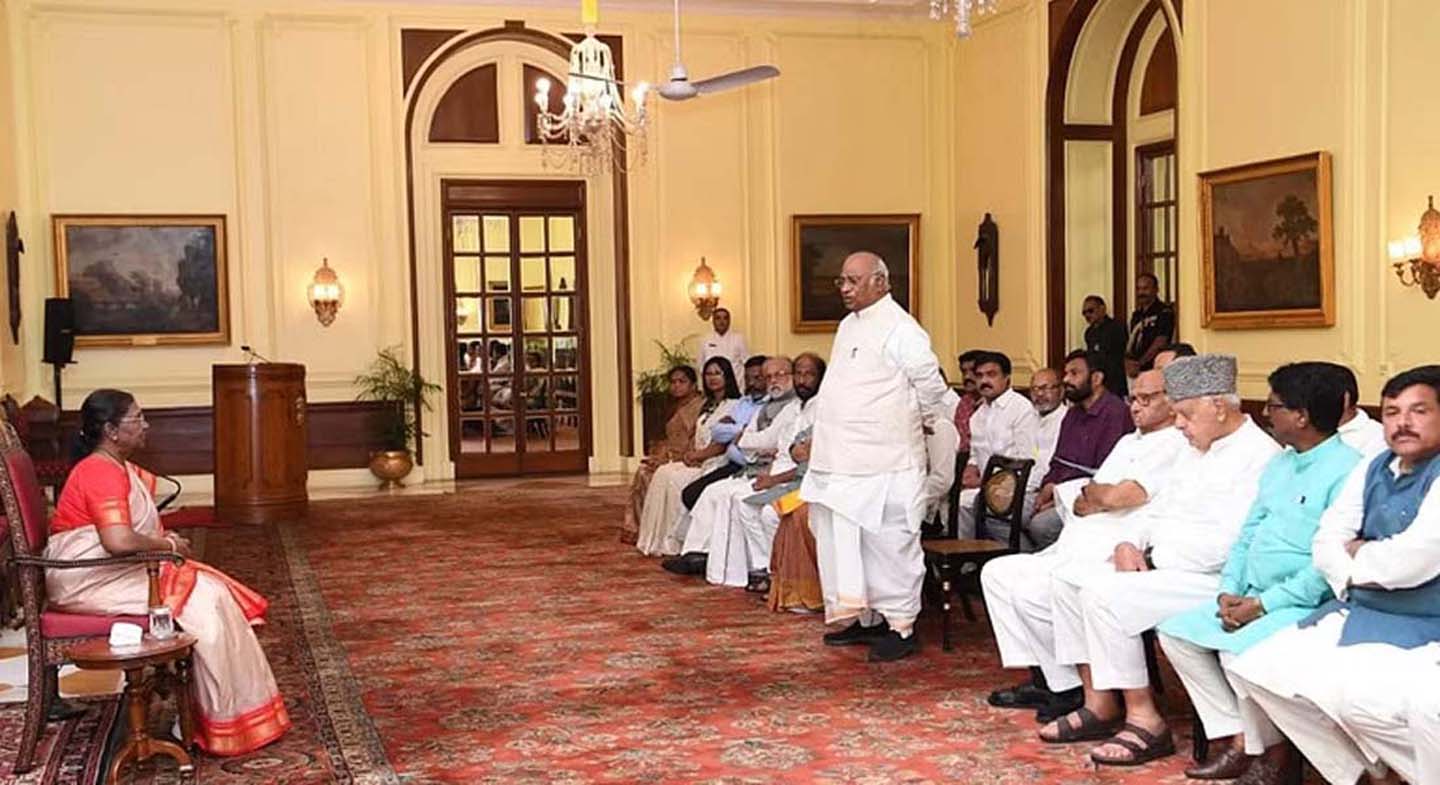 ಮಣಿಪುರದ ಜನರ ಸಂಕಷ್ಟವನ್ನು ನಿವಾರಿಸಲು, ರಾಜ್ಯದಲ್ಲಿ ಸಹಜಸ್ಥಿತಿಯನ್ನು ಮರುಸ್ಥಾಪಿಸಲು ಸಹಾಯ ಮಾಡುವಂತೆ ರಾಷ್ಟ್ರಪತಿ ದ್ರೌಪದಿ ಮುರ್ಮು ಅವರಿಗೆ ಇಂಡಿಯಾ ಮೈತ್ರಿಕೂಟದ ನಾಯಕರು ಖುದ್ದು ಭೇಟಿಯಾಗಿ ಒತ್ತಾಯಿಸಿದ್ದಾರೆ.