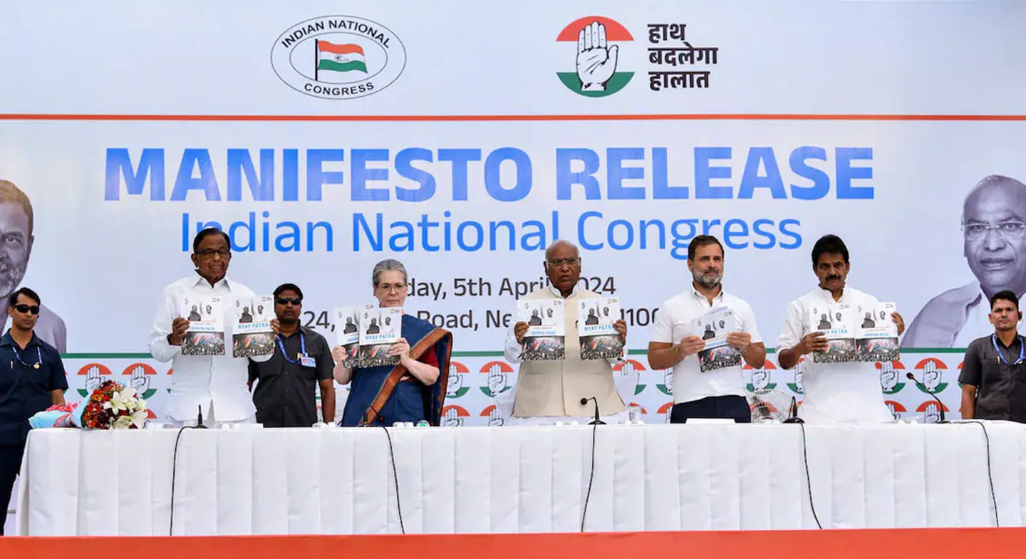 ಕಾಂಗ್ರೆಸ್ ನಾಯಕರಾದ ಮಲ್ಲಿಕಾರ್ಜುನ ಖರ್ಗೆ, ಸೋನಿಯಾ ಗಾಂಧಿ ಹಾಗೂ ರಾಹುಲ್ ಗಾಂಧಿ ಚುನಾವಣಾ ಪ್ರಣಾಳಿಕೆ ಬಿಡುಗಡೆ ಮಾಡಿದರು. ಆಗ ಮಾತನಾಡಿದ ಪಿ.ಚಿದಂಬರಂ, “ಕಳೆದ 10 ವರ್ಷಗಳಲ್ಲಿ ಯಾರನೆಲ್ಲ ಹೊರಗಿಡಲಾಯಿತೋ ಅಂತಹವರಿಗೆಲ್ಲ ನ್ಯಾಯ ಕೊಡಿಸಲು ಕಾಂಗ್ರೆಸ್ ಪ್ರಣಾಳಿಕೆ ಸಿದ್ಧಪಡಿಸಲಾಗಿದೆ” ಎಂದರು.