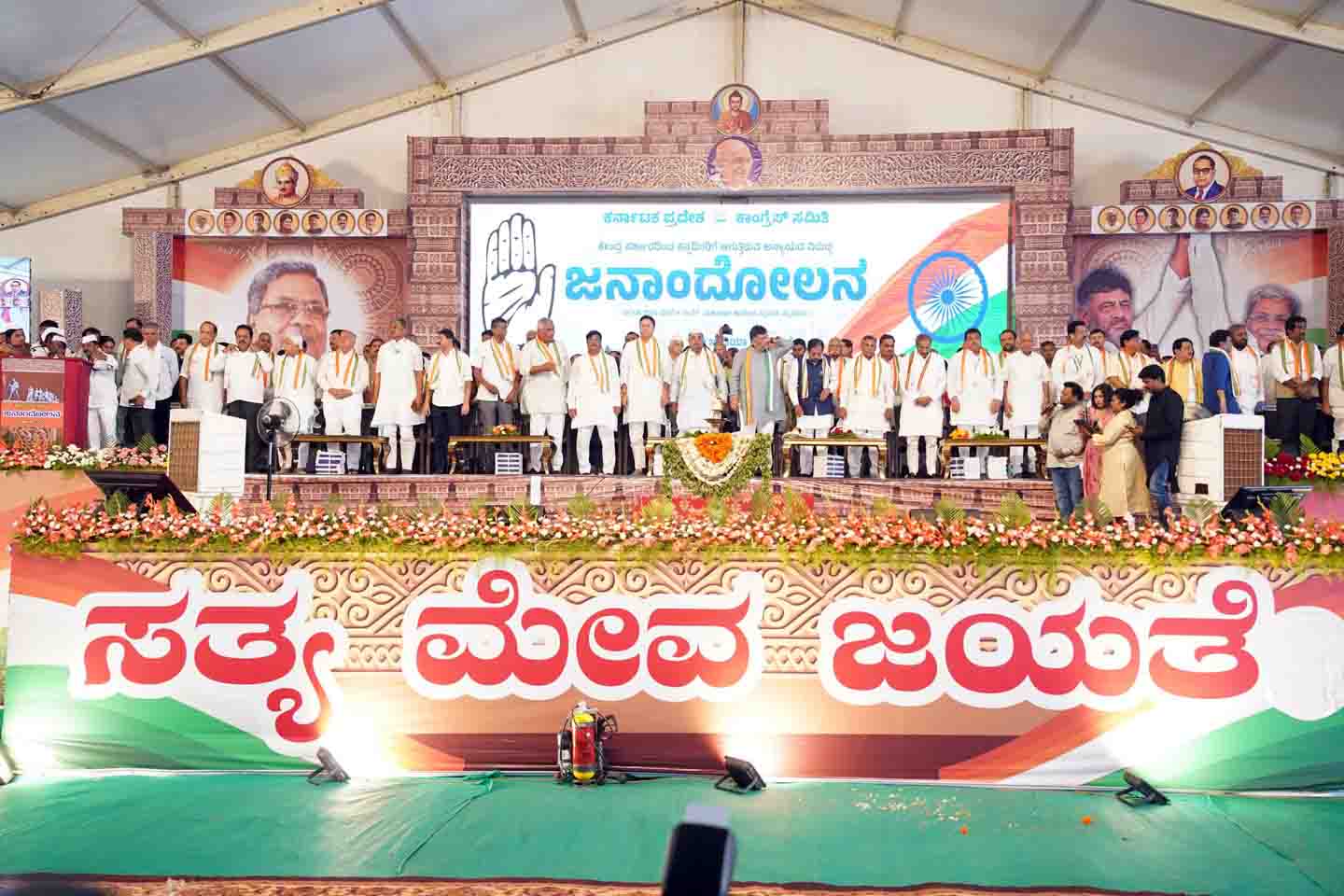 ಮೈಸೂರು: ಕೇಂದ್ರ ಬಿಜೆಪಿ ಸರ್ಕಾರದ ದ್ವೇಷ ರಾಜಕಾರಣ ಮತ್ತು ಅಧಿಕಾರ ದುರ್ಬಳಕೆ, ಚುನಾಯಿತ ಸರ್ಕಾರಗಳನ್ನು ಉರುಳಿಸುವ ಬಿಜೆಪಿ, ಜೆಡಿಎಸ್ ನ ಜನತಂತ್ರ ವಿರೋಧಿ ನಡೆಯನ್ನು ವಿರೋಧಿಸಿ, ಮುಖ್ಯಮಂತ್ರಿ ಸಿದ್ದರಾಮಯ್ಯ ಅವರು ಮೈಸೂರಿನ ಮಹಾರಾಜ ಕಾಲೇಜು ಮೈದಾನದಲ್ಲಿ ನಡೆದ ಬೃಹತ್ ಜನಾಂದೋಲನ ಸಮಾವೇಶವನ್ನು ಉದ್ಘಾಟಿಸಿ ಮಾತನಾಡಿದರು.