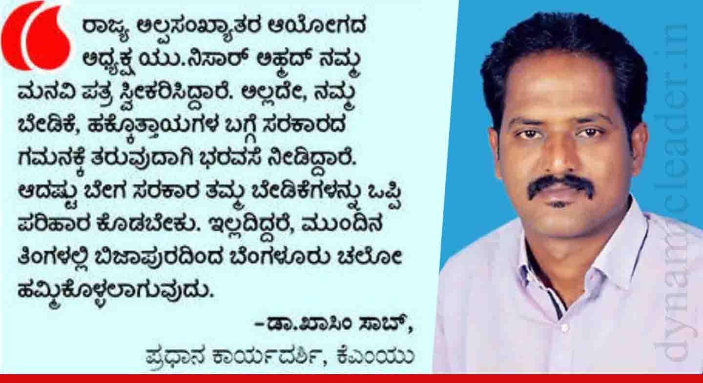 ಇಂತಹ ಎಲ್ಲಾ ಕ್ಷೇತ್ರಗಳಲ್ಲಿ ಹಿಂದುಳಿದ, ತಾರತಮ್ಯಕ್ಕೆ ಒಳಗಾದ, ಅಭಿವೃದ್ಧಿಯಿಂದ ವಂಚನೆಗೆ ಒಳಗಾದ, ಕೋಮುವಾದಿಗಳ ದೌರ್ಜನ್ಯಕ್ಕೆ ಒಳಗಾದ ಹಾಗೂ ರಾಜಕೀಯವಾಗಿ ಸಮಾನ ಪಾಲುಸಿಗದ ಮುಸ್ಲಿಮರಾದ ನಾವು ನಮ್ಮ ಹಕ್ಕುಗಳಿಗಾಗಿ ಸಾಮಾಜಿಕ ನ್ಯಾಯಕ್ಕಾಗಿ ಈ ಕೆಳಕಂಡ ಬೇಡಿಕೆಗಳನ್ನು ಶೀಘ್ರವಾಗಿ ಈಡೇರಿಸಲು ನಾವು ಸರ್ಕಾರಕ್ಕೆ ಆಗ್ರಹಿಸುತ್ತಿದ್ದೇವೆ.