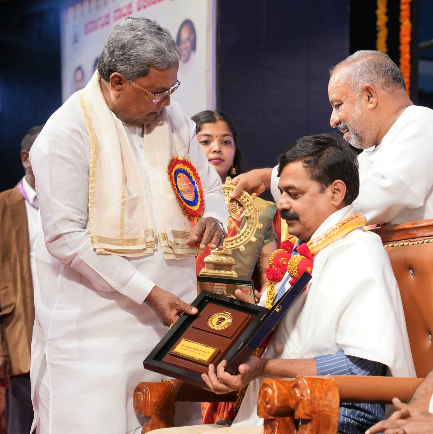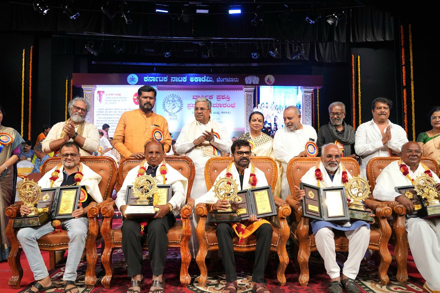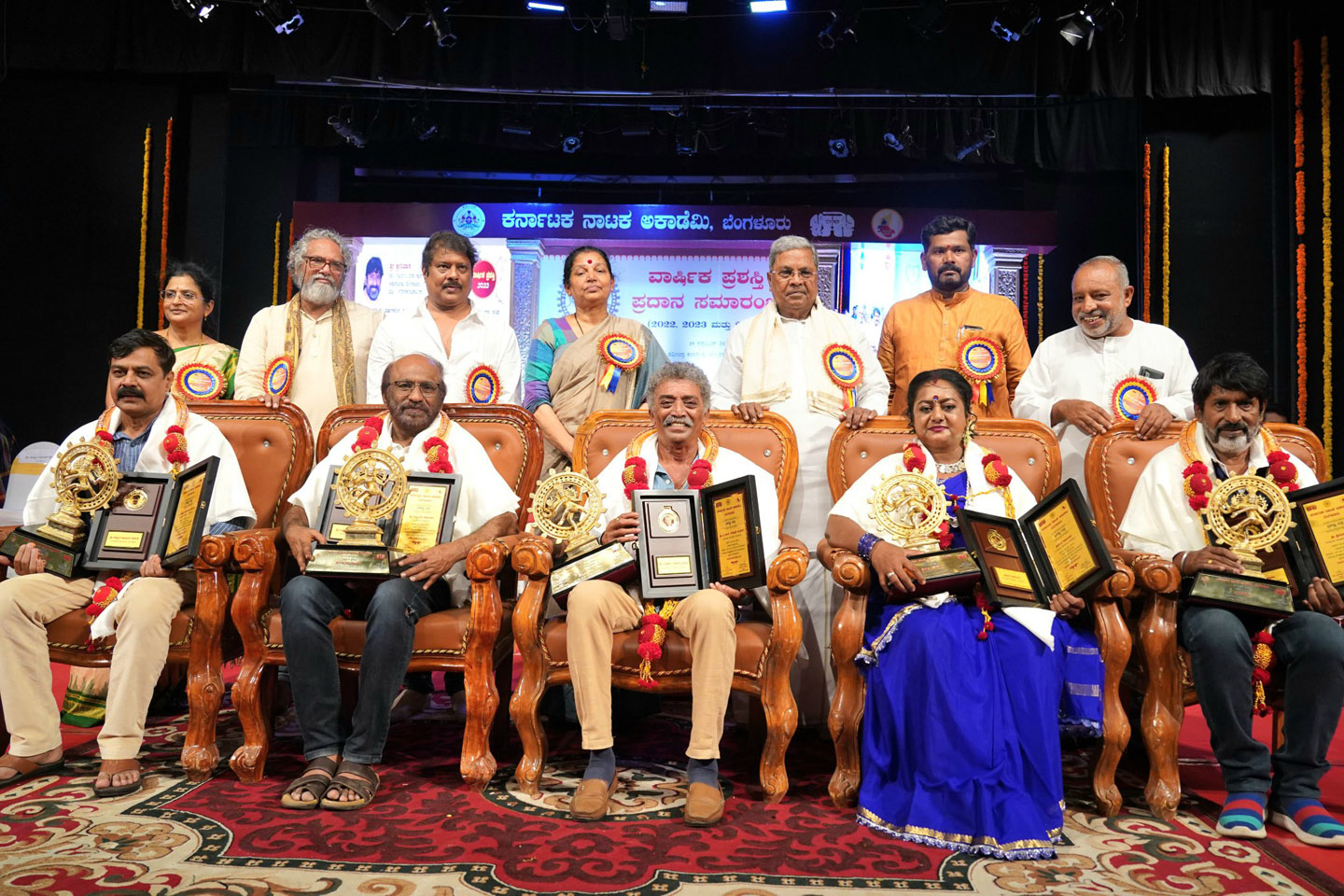 ಬೆಂಗಳೂರು: ಕರ್ನಾಟಕ ನಾಟಕ ಅಕಾಡೆಮಿ ರವೀಂದ್ರ ಕಲಾಕ್ಷೇತ್ರದಲ್ಲಿ ಆಯೋಜಿಸಿದ್ದ ಕಾರ್ಯಕ್ರಮದಲ್ಲಿ 2022, 2023, 2024ನೇ ಸಾಲಿನ ವಾರ್ಷಿಕ ನಾಟಕ ಪ್ರಶಸ್ತಿಗಳನ್ನು ವಿತರಿಸಲಾಯಿತು. ಮುಖ್ಯಮಂತ್ರಿ ಸಿದ್ದರಾಮಯ್ಯ ಅವರು ವಿತರಿಸಿ, ಪ್ರಶಸ್ತಿ ವಿಜೇತರಿಗೆ ಗೌರವಿಸಿದರು.