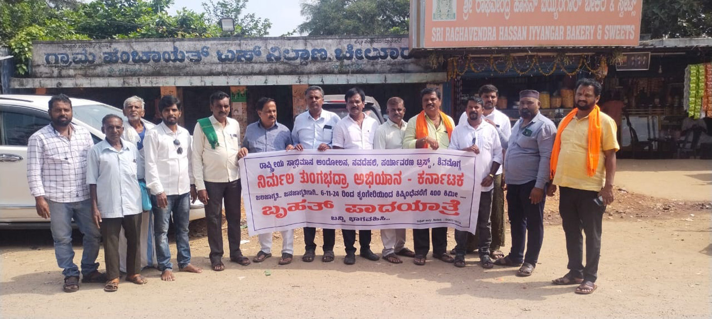 ಪಾದಯಾತ್ರೆ ಶಿವಮೊಗ್ಗಕ್ಕೆ ನವಂಬರ್ 10 ರಂದು ತಲುಪಲಿದ್ದು ಅಲ್ಲಿಂದ ದಿನಾಂಕ 11 ರಂದು ಸಂಜೆ ಹೊಳಲೂರ್ ನಲ್ಲಿ ರಾತ್ರಿ ವಿಶ್ರಾಂತಿಯ ನಂತರ ಬೆಳಗ್ಗೆ 12 ರಂದು ಹೊನ್ನಾಳಿ ತಾಲ್ಲೂಕಿನ ಚೀಲೂರ್ ಗ್ರಾಮವನ್ನು ತಲುಪುವುದು, ಊಟದ ನಂತರ ಮದ್ಯಾಹ್ನ 3.30 ಗಂಟೆಯ ನಂತರ ಗೋಪಾನಹಳ್ಳಿಯ ಮೂಲಕ ಗೋವಿನಕೋವಿಯಲ್ಲಿ ಟೀ-ಕಾಫಿ ನಂತರ ಸಾರ್ವಜನಿಕರನ್ನು ಉದ್ದೇಶಿಸಿ ನದಿಯ ನೀರಿನ ಸ್ವಚ್ಛತೆಯ ಬಗ್ಗೆ ಅರಿವು ಮೂಡಿಸುವ ಕಾರ್ಯಕ್ರಮವನ್ನು ಹಮ್ಮಿಕೊಳ್ಳಲಾಗುವುದು.
