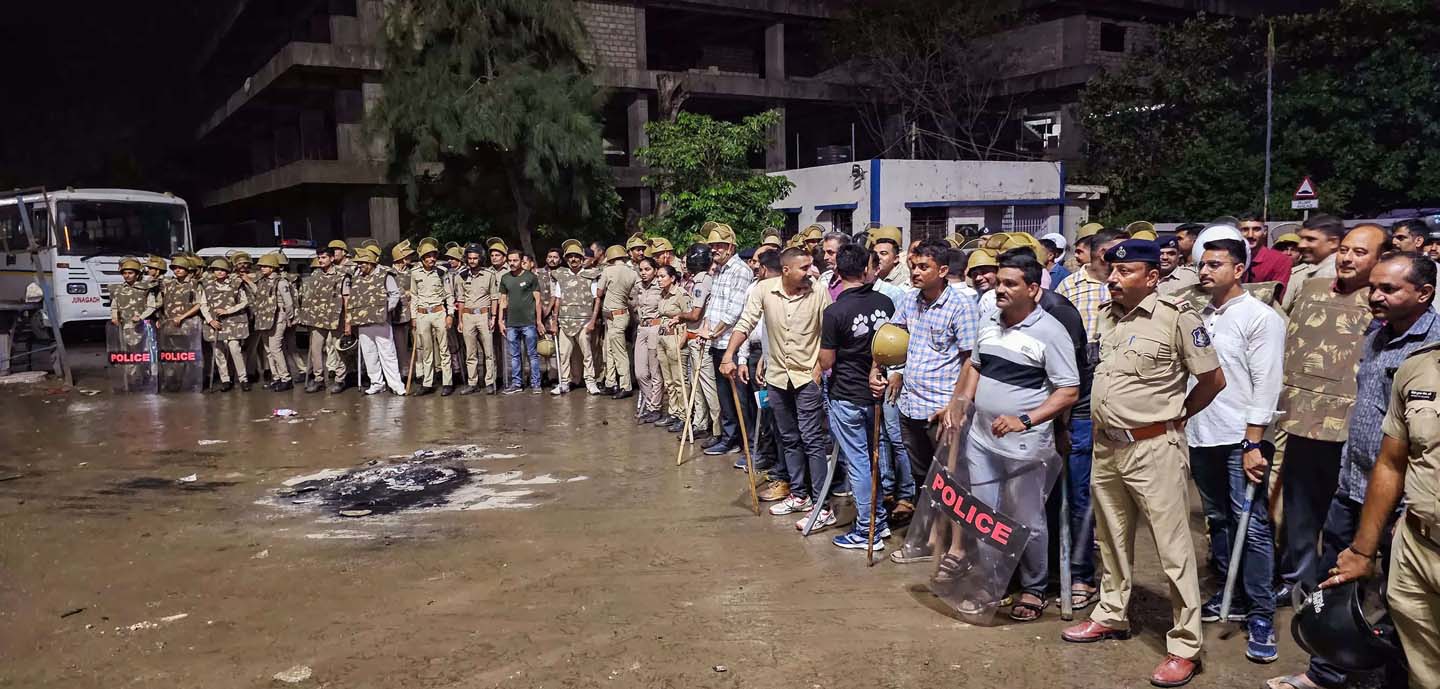 ಜುನಾಗಢ: ಜೂನ್ 14ರಂದು ಜುನಾಗಢ ಮುನ್ಸಿಪಲ್ ಕಾರ್ಪೊರೇಷನ್ ಮಜೆವಾಡಿ ದರ್ವಾಜಾ ಬಳಿಯ ಮಸೀದಿಯೊಂದಕ್ಕೆ ಜಮೀನಿನ ಮಾಲೀಕತ್ವದ ಬಗ್ಗೆ ದಾಖಲೆಗಳನ್ನು ನೀಡುವಂತೆ ನೋಟಿಸ್ ನೀಡಿತ್ತು. ನೋಟಿಸ್ನಿಂದ ಕ್ಷೋಭೆಗೊಳಗಾದ ಸುಮಾರು 500-600 ಜನರು ಶುಕ್ರವಾರ ರಾತ್ರಿ ಧಾರ್ಮಿಕ ಕಟ್ಟಡದ ಬಳಿ ಜಮಾಯಿಸಿ ರಸ್ತೆಗಳನ್ನು ತಡೆದರು ಎಂದು ಪೊಲೀಸ್ ವರಿಷ್ಠಾಧಿಕಾರಿ ರವಿತೇಜ ವಾಸಮಶೆಟ್ಟಿ ತಿಳಿಸಿದ್ದಾರೆ.